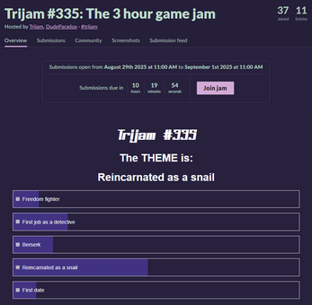 Made for TriJam #335 - Theme: Reincarnated as a snail